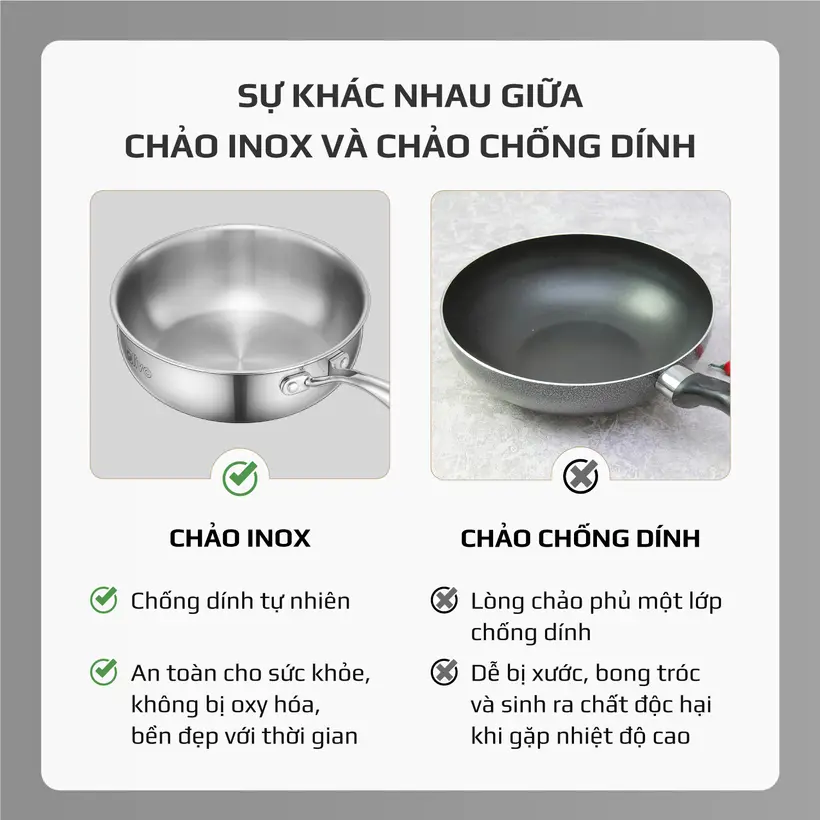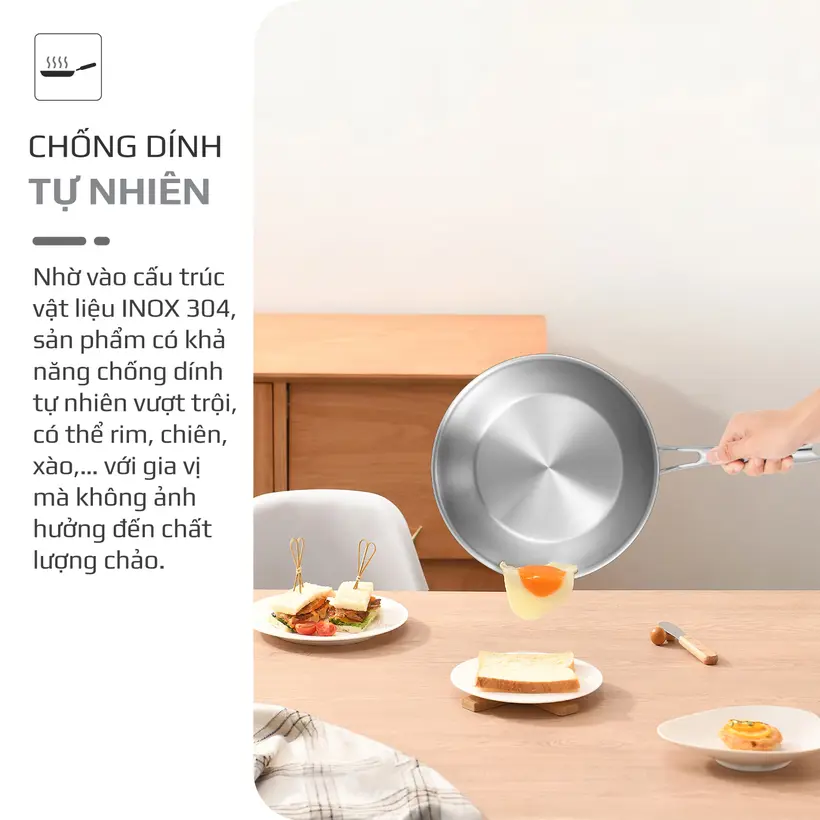 Chảo inox hạn chế trầy xước và giữ độ sáng đẹp theo thời gian.