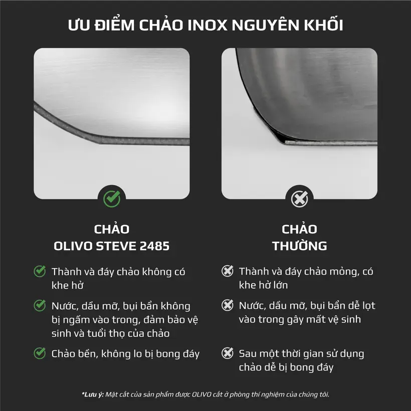 Ưu điểm của chảo inox Olivo Steve 2485 so với chảo thông thường
