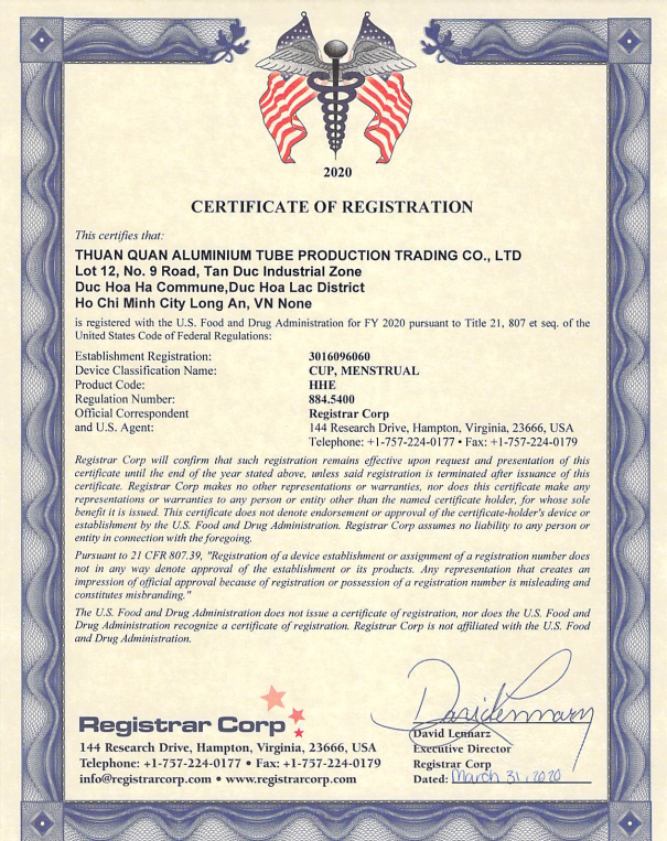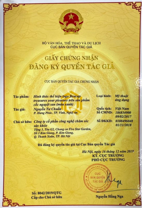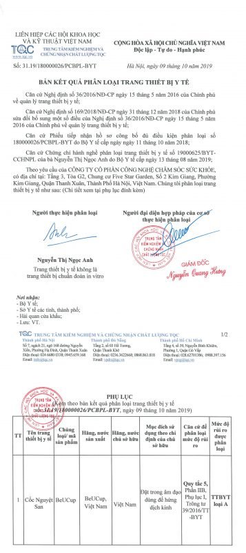 - BeUCup đạt chuẩn FDA Hoa Kỳ (của Cục Quản Lý Thực Phẩm và Dược Phẩm Hoa Kỳ)