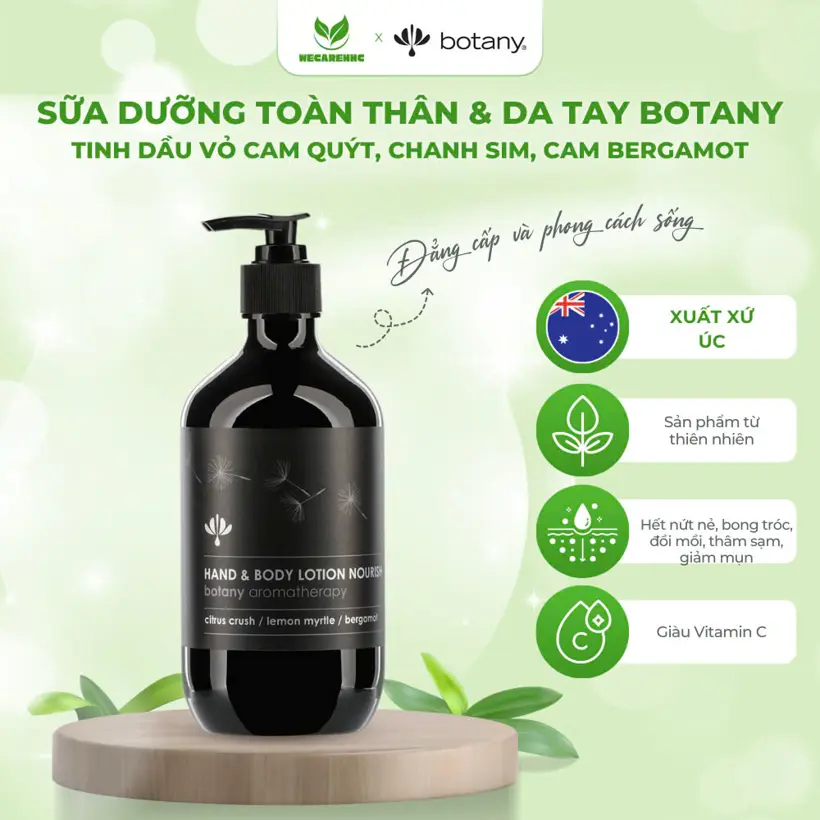 - Tên sản phẩm: Sữa dưỡng ẩm toàn thân BOTANY tinh dầu cam quýt – chanh sim – Bergamot