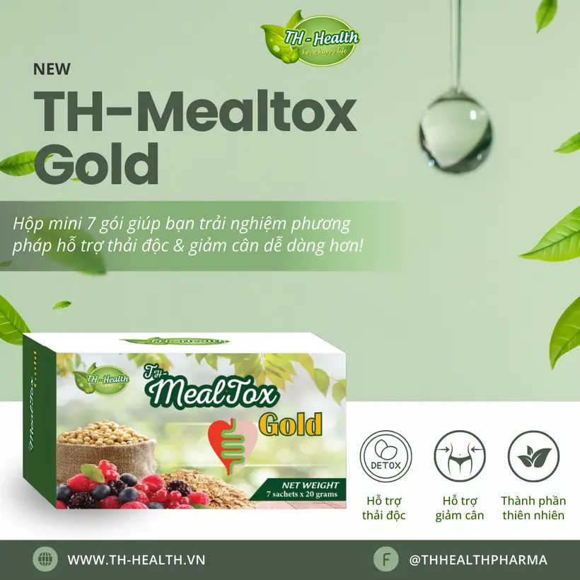 TH-Mealtox GOLD là sản phẩm của TH Health, được phát triển như một “bữa ăn thay thế nhẹ nhàng” giúp bổ sung chất xơ, hỗ trợ tiêu hóa, giảm hấp thu chất béo và đường. Mỗi hộp 07 gói chứa công thức bột độc đáo, dễ pha uống.