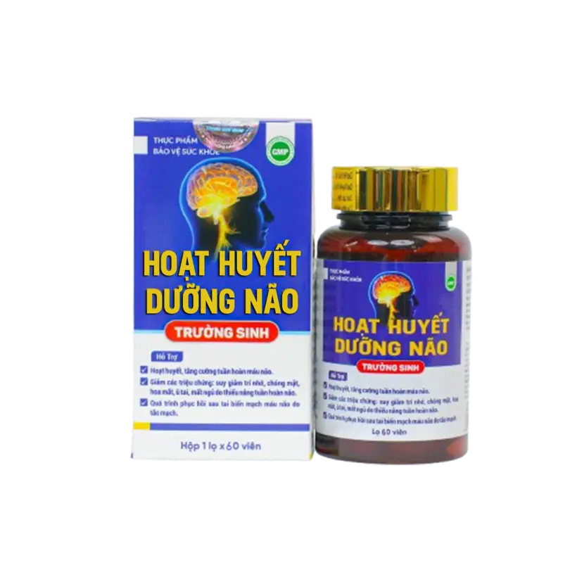 TPBVSK Hoạt Huyết Dưỡng Não Trường Sinh Hộp 60 viên là sản phẩm hỗ trợ tăng cường tuần hoàn máu, đặc biệt là máu lên não. Sản phẩm được chiết xuất từ các thảo dược quý như đinh lăng, ngưu tất, xuyên khung, bạch quả, giúp cải thiện các triệu chứng: