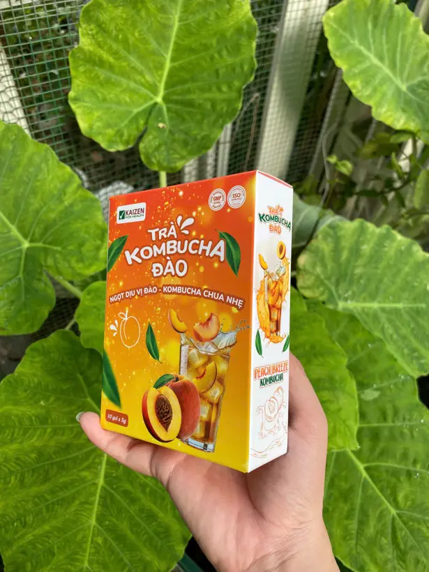 Trà Kombucha Đào là thức uống lên men từ trà đen và đường tự nhiên, được nuôi cấy qua hệ men sinh học SCOBY. Sản phẩm cung cấp lợi khuẩn probiotic, enzyme và acid hữu cơ giúp hỗ trợ tiêu hóa, thải độc và nâng cao sức khỏe.