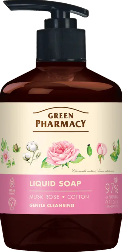 Xà phòng rửa tay Green Pharmacy Hoa Hồng & Bông 460ml là sản phẩm chăm sóc cá nhân chiết xuất từ thảo mộc thiên nhiên, giúp làm sạch da tay hiệu quả nhưng vẫn giữ độ ẩm, không gây khô ráp.